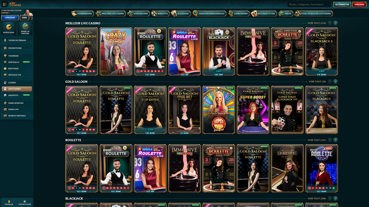 Live casino Live casino Realtime casinospellen die worden gestreamd vanuit professionele studio’s of fysieke casino’s, met live dealers en interactieve tafelspellen.