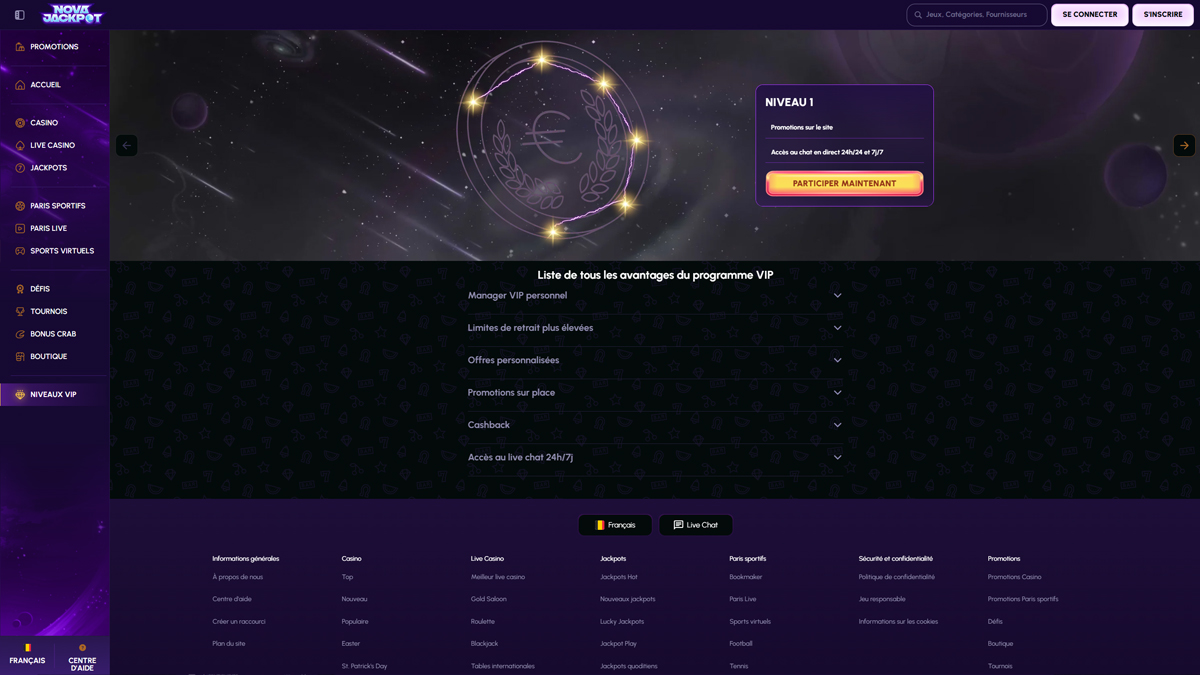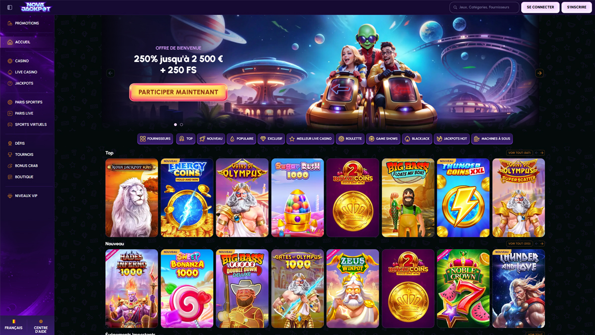 Casino NovaJackpot is een uitgebreid online casino- en wedplatform dat een breed scala aan games combineert met sportboekfuncties, regelmatige acties, toernooien en een meerlaags VIP-systeem. Het platform, ontworpen met een moderne interface en uitgebreide spelopties, probeert zowel casinospellen als sportweddenschappen aan te bieden vanuit één account en één bedieningspaneel.