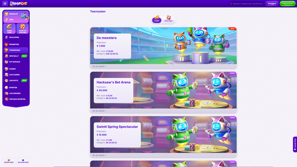 Casino RoboCat combineert modern design met de focus op vloeiend spel en voordelige functies. Het platform is gemaakt voor spelers die snelheid, overzichtelijkheid en variatie waarderen. Het biedt een brede selectie slots, populaire tafelspellen en een live casino. De navigatie is intuïtief, het laden snel en de algemene lay-out zorgt voor gemakkelijke toegang tot alles, of spelers nu aan het draaien zijn, promoties bekijken of hun account beheren.