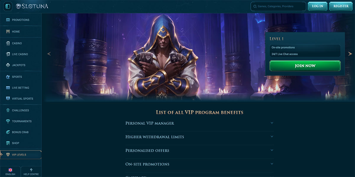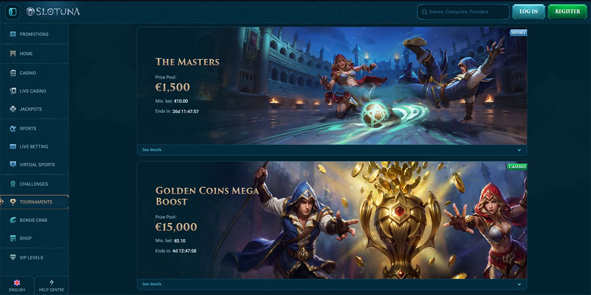 Slotuna combineert een volwaardige casinosectie met slots, live dealers, jackpots en tafelspellen, samen met een sportboek voor pre-match en live wedden.