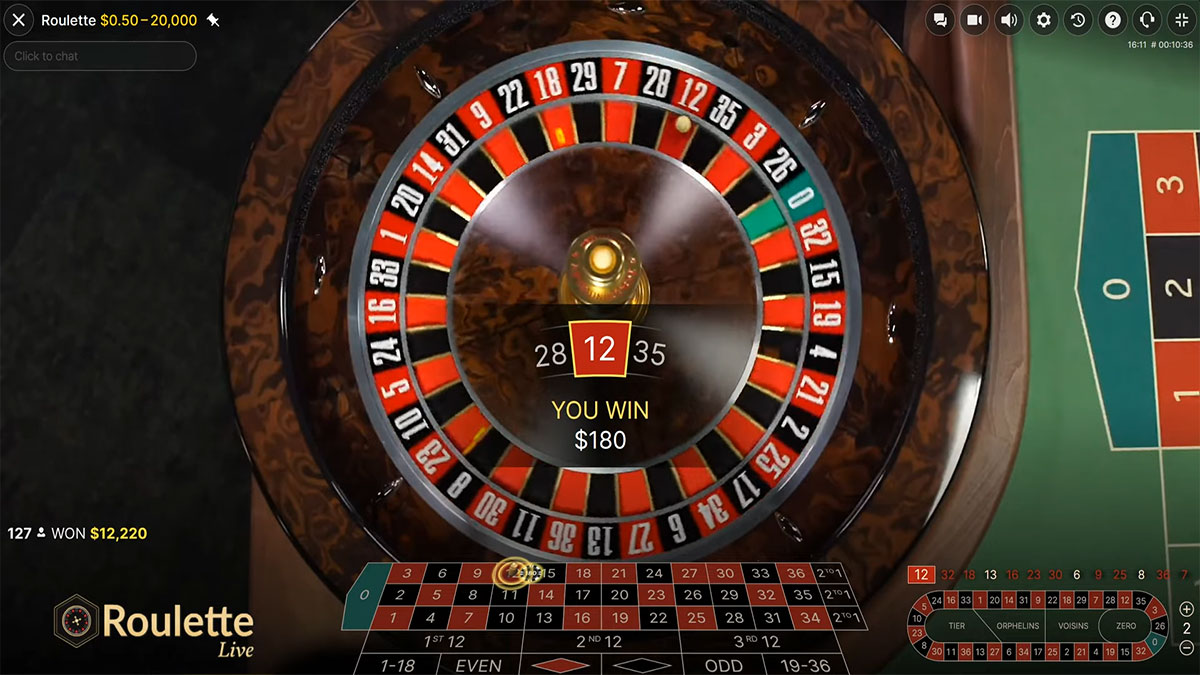 Wanneer de inzettimer nul bereikt, worden er geen verdere inzetten meer geaccepteerd en draait de dealer het wiel in de ene richting, terwijl hij de bal in de tegenovergestelde richting gooit. De bal valt uiteindelijk in een van de genummerde vakjes, waardoor de uitkomst van de ronde wordt bepaald. Het systeem registreert onmiddellijk het winnende nummer en berekent automatisch de winsten op basis van de geplaatste inzetten. Rechte inzetten op een nummer betalen 35:1 uit, terwijl buiteninzetten zoals rood/zwart of even/oneven 1:1 uitbetalen, in overeenstemming met de klassieke Europese roulette-uitbetalingsstructuur. Het enkele nul-formaat garandeert een huisvoordeel (house edge) van 2,70%, dat wiskundig in het spel is ingebouwd.