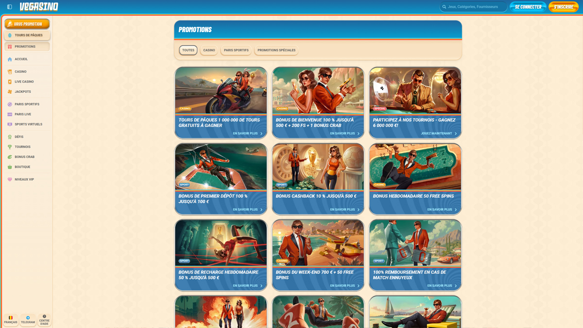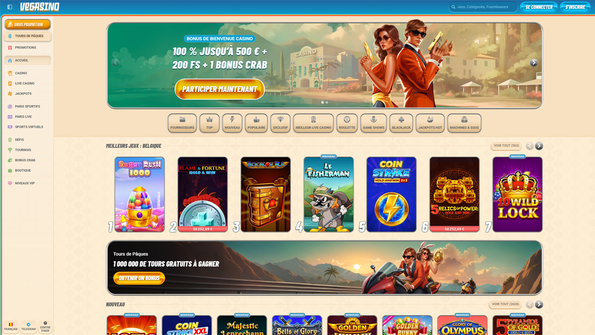 Uit mijn review van Vegasino Casino blijkt dat dit platform een levendige en goed gestructureerde omgeving biedt voor Belgische spelers die zowel casinospellen als sportweddenschappen zoeken. De hoofd-lobby is intuïtief en maakt het eenvoudig om je favoriete games en acties te vinden. Laden gebeurt razendsnel en de variatie – van slots en live dealer-tafels tot uitgebreide sportmarkten – biedt voor elke Belgische speler iets passends. De promoties, inclusief de gelaagde welkomstbonus en terugkerende aanbiedingen zoals wekelijkse free spins of cashback, verhogen de aantrekkingskracht aanzienlijk. Het enkele account voor casino en sportweddenschappen zorgt voor extra gemak, en het mobiele spelen verloopt vlekkeloos via de browser zonder aparte app.