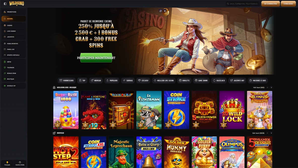 WildSino Casino is een online gokbestemming met een Wild West-thema die in 2024 debuteerde en opereert onder een dubbele licentie van de Gaming Board of Anjouan en PAGCOR. Het verwelkomt spelers uit België. Het platform beschikt over een uitgebreide catalogus met meer dan 10.000 casinotitels, variërend van videoslots en progressieve jackpots tot tafelspellen en een meeslepende live casino sectie. Er is ook een volledig uitgeruste sportboek die voetbal, basketbal, tennis en esports dekt. Belgische spelers profiteren van toegankelijke instapdrempels met minimale stortingen vanaf 20 € voor de meeste methoden, diverse betalingsoplossingen waaronder traditionele banken en cryptocurrencies, en een mobiele ervaring rechtstreeks in de browser die volledige casinofunctionaliteit biedt zonder app-installatie. Dit alles maakt WildSino een aantrekkelijke bestemming voor Belgen die op zoek zijn naar een functierijk online gokplatform.