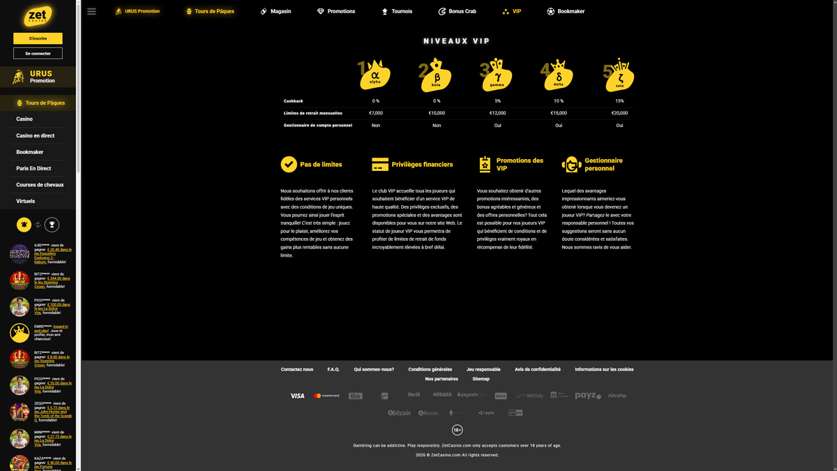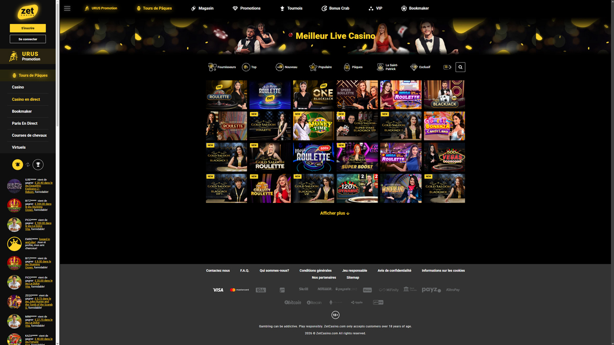 Zet Casino profileert zich als een online casino met een enorm spelenaanbod, gebouwd voor spelers die keuze, een overzichtelijke structuur en toegang via de browser waarderen. Het platform combineert casinospellen en sportweddenschappen onder één account, waarbij de navigatie eenvoudig en consistent blijft in alle secties. Met meer dan 9.400 gokkasten en meer dan 260 titels in het live casino en tafelspellen, ligt de focus op het ruime aanbod eerder dan op gespecialiseerde functies.